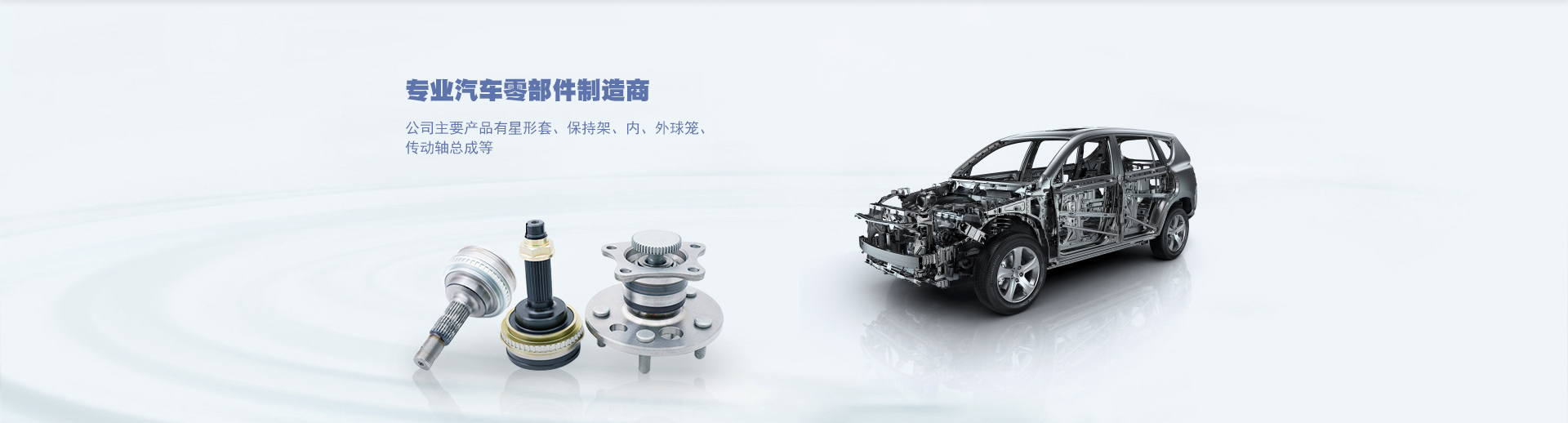 公司主要产品有星形套、保持架、内、外球笼、传动轴总成等,在保持架及星形套和电动车沙滩车、SUV、ATV传动轴方面有着强劲的竟争优势,各种零部件型号齐全。